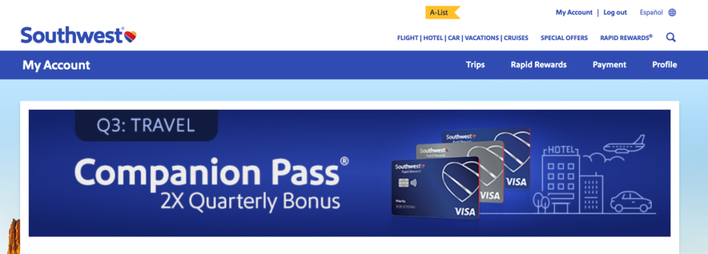- You log into your Southwest Rapid Rewards account.